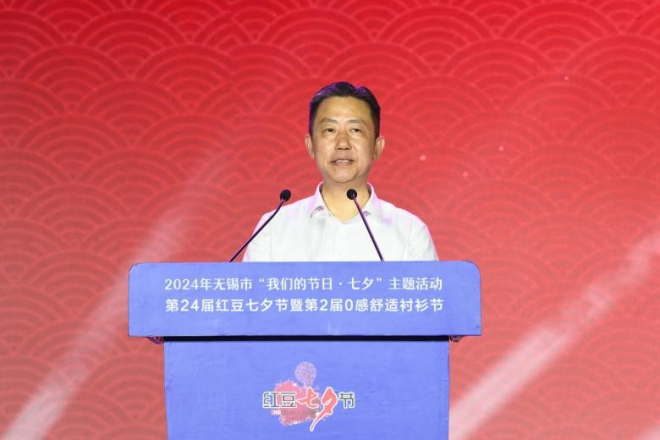無錫市委宣傳部常務(wù)副部長(zhǎng)蔡文煜在致辭中表示,過去二十多年里,紅豆集團(tuán)始終堅(jiān)持以傳統(tǒng)文化為寄托,以七夕節(jié)為契機(jī),通過詩歌朗誦會(huì)、七夕節(jié)民俗論壇、尋找當(dāng)代“王維”、感動(dòng)中國的愛情故事征集等多種形式的活動(dòng),將弘揚(yáng)中國傳統(tǒng)文化落到實(shí)處。紅豆集團(tuán)連續(xù)24年舉辦的“紅豆七夕節(jié)”,不僅是紅豆企業(yè)品牌建設(shè),充分挖掘七夕文化內(nèi)涵的具體行動(dòng),更是紅豆學(xué)習(xí)貫徹落實(shí)習(xí)近平文化思想,持續(xù)推進(jìn)中國傳統(tǒng)節(jié)日振興,推動(dòng)中華優(yōu)秀傳統(tǒng)文化傳承發(fā)展的具體實(shí)踐。